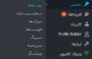 همچنین با نصب بعضی از قالب های وردپرس یک بخش به منوی مدیریتی وردپرس شما اضافه میشود (بیشتر اوقات نام این بخش تنظیمات قالب میباشد)
