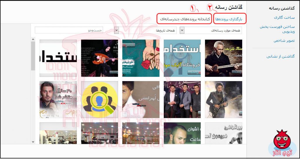 از پنل مدیریتی بخشی را با نام رسانه مشاهده میکنید.