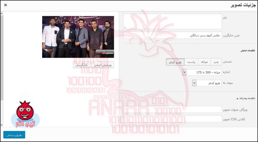 پس از تغییرات میتوانید روی گزینه ” بهروزرسانی “ کلیک کنید.