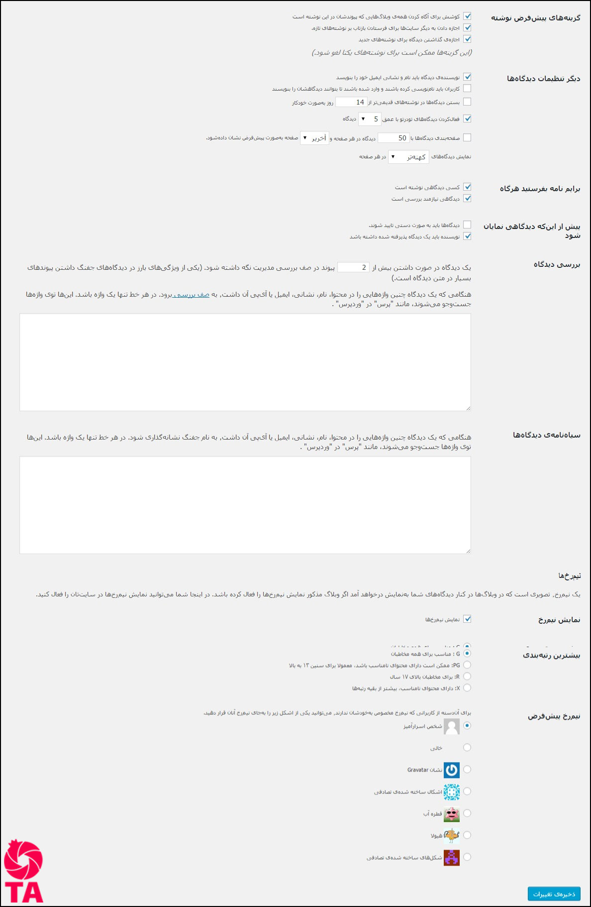 تنظیمات در هر وب سایتی نقش مهمی دارد، به عنوان یک مدیر وب سایت باید تمام بخش های نظرات را بررسی کنید تا بدانید که وردپرس چه امکاناتی و چه تنظیماتی برای مدیریت سایت شما دارد، تا در مواقع مورد نیاز از امکانات مختلف بهدرستی استفاده کنید، کمی وقت بذارید و گزینه های مختلف را مطالعه کنید، چون زبان وردپرس فارسی است درک خوبی به شما میدهد.