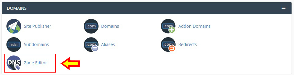 در بخش مدیریت هاست (سی پنل) در بخش Domains روی گزینه Zone Editor کلیک کنید تا وارد صفحه جدیدی شویم.
